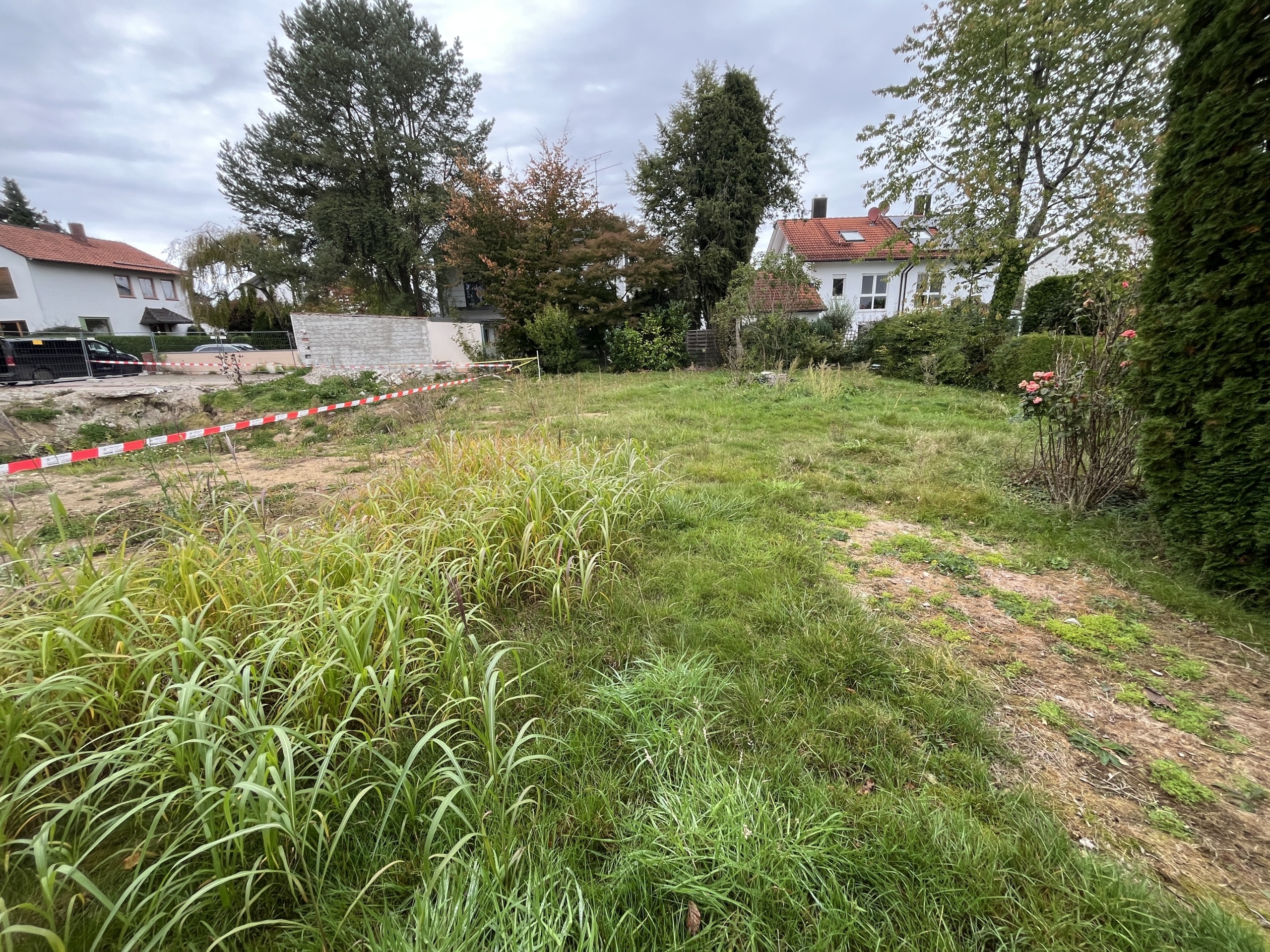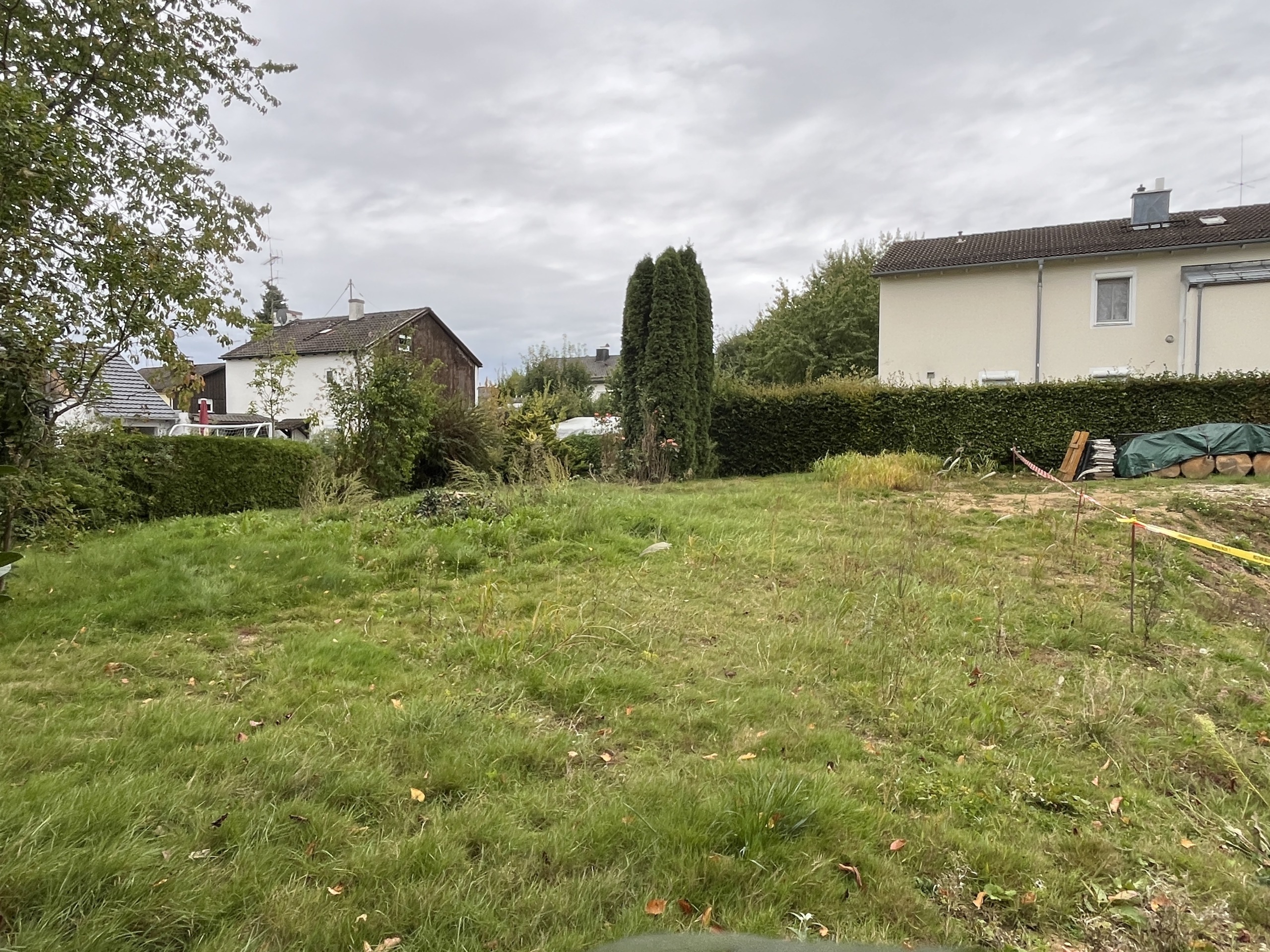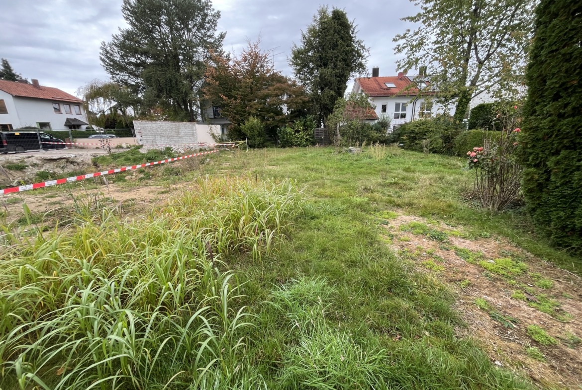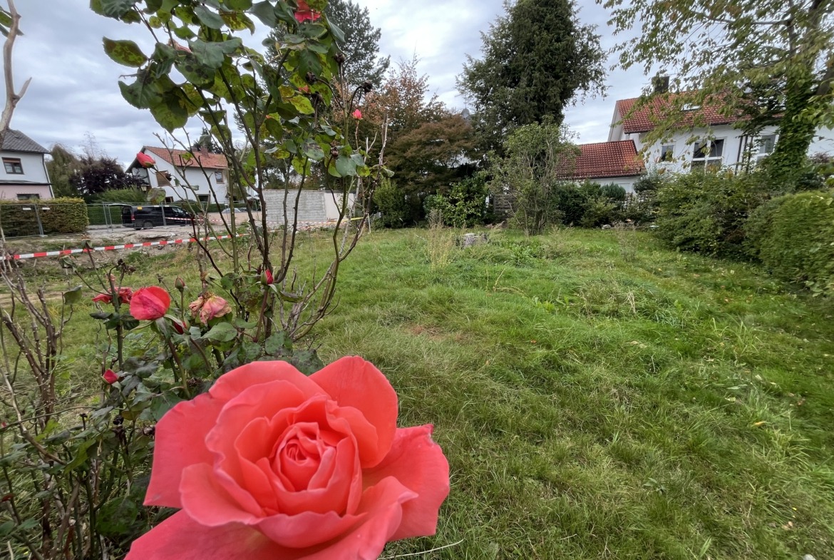 Besonders reizvoll ist die Ausrichtung: Das Haus erstreckt sich von Nordost nach Südwest, der Garten öffnet sich nach Osten und Süden – viel Licht und Sonne sind somit garantiert. Das Grundstück ist erschlossen, für den Neubau fallen jedoch noch Anschluss- bzw. Herstellungsbeiträge an.