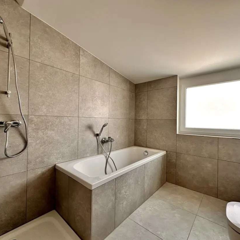 Badezimmer mit Badewanne und fast bodengleicher Dusche