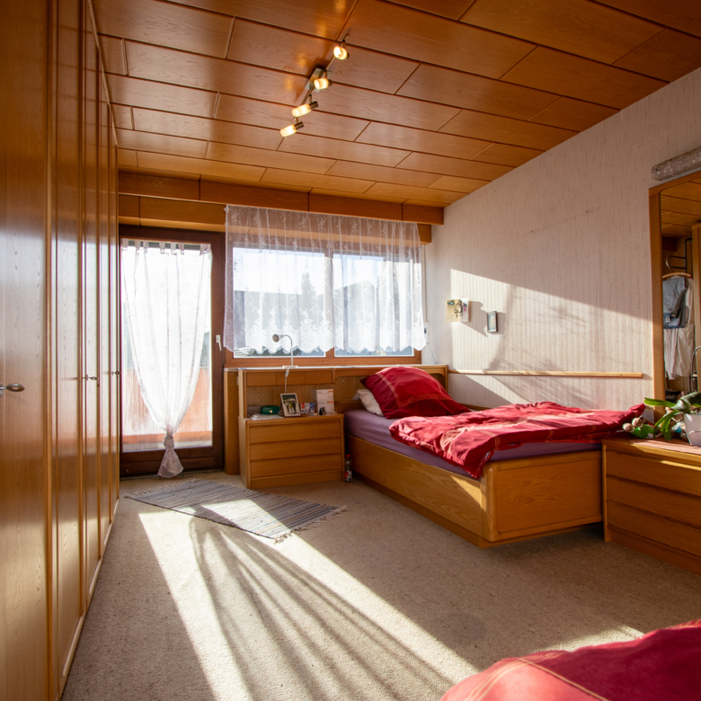 Im Erdgeschoss erwartet Sie ein großzügiges Wohn-/Esszimmer mit Zugang zur sonnigen Südterrasse, eine Einbau-Küche mit Schiebetür sowie ein Gäste-WC. Das Obergeschoss bietet drei Schlafzimmer und ein Tageslichtbad mit Wanne und Doppelwaschbecken. Zwei weitere Schlafzimmer mit Stauraum befinden sich im wohnlich ausgebauten Dachgeschoss.